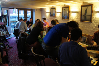So this week Athena got a trial. Athena is a local gaming store that have been in Norwich for a couple of years and very recently have moved to a new huge premises - a former social club with three floors of hall space. With plenty of table and chair space and catering to gamers, Athena offers a no brainer fit for NoBoG gaming. On the other hand, NoBoGians like a nice pub - for the beer or the atmosphere or the eclectic mix of benches, stools and chairs, or perhaps at the end of it all, just for the fun of it.
