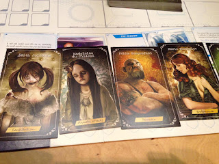 We played the base box scenario - you get one, and only one scenario with the game.. which is... rather mean, but given how much is in it, it probably is the equivalent of several scenarios of a more static deduction type game ) - and the story was compelling and the elements nicely clicked. Without giving spoilers away, a visit to a mental hospital in the1920s to investigate something Bad Going On. You can probably imagine what kind of field that gives you to work with - its not an unfamiliar trope.